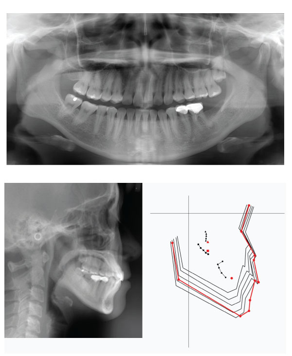 Figure 5: Post-treatment Panoramic and Cephalometric radiograph