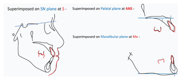 Figure 6: Cephalometric superimposition of initial (Black line) and post-treatment(Red line)