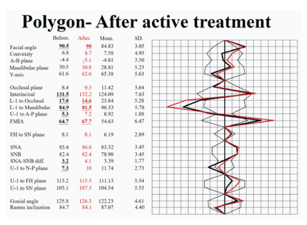 The patient was satisfied with the treatment results after 1 year and 7 months of orthodontic treatment. (Figure 4, 5, 6 and Table 2)