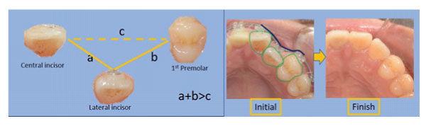 within five months(Figure 8). When the ISW archwire was engaged into the bracket slots, the wire is not a straight line but a curvature, therefore the actual wire length(a+b) is longer than the straight line distance(c)[7-8] (Figure 9). This explains how arch expansion by leveling can be achieved. This is a simple and efficient approach for clinicians.