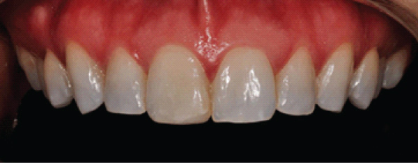 In the clinical case presented here, the gum used was the LT and the characterization was obtained by the staining technique, as indicated by the manufacturer. The patient went to the laboratory to have the ceramist responsible for the staining technique analyze the neighboring teeth and draw the extrinsic characterization graph of the tooth in question. Figure 6 shows how harmonic and similar the final result was in terms of color, translucency, and individualization, such as the enamel pearl reproduced on the distal side, similar to the one on tooth 21.