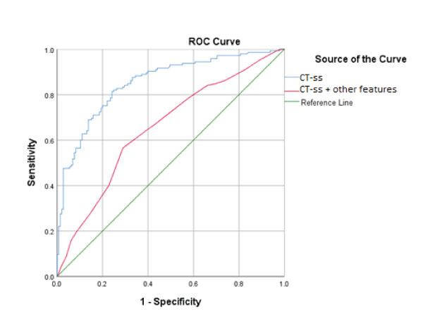 Eventually, the ROC curves (Table 3) were plotted to test the predictive value of the CT-ss as a single factor and to define a properly discriminating cut-off value.