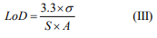 Where σ is the maximum standard deviation, S is the slope of the calibration curve and A is the total electrode surface.