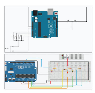 The schematic diagram of the circuit (Figure A(i)) and a simulation image in Tinkercad (Figure A(ii)) are shown below.