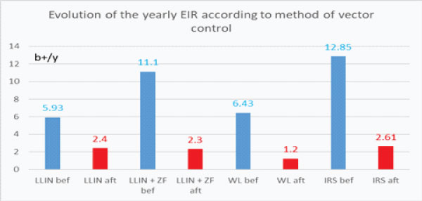 Graph 5b: Evolution of the Entomological Inoculation Rate according to the method of vector control implemented.