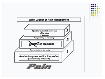- “By the ladder” Enabling a stepwise approach to treatment commencing with non–opioids and increasing to strong opioids (Figure 1). The level at which a child enters the ladder is determined by the child’s needs, the intensity of pain and response to previous treatment