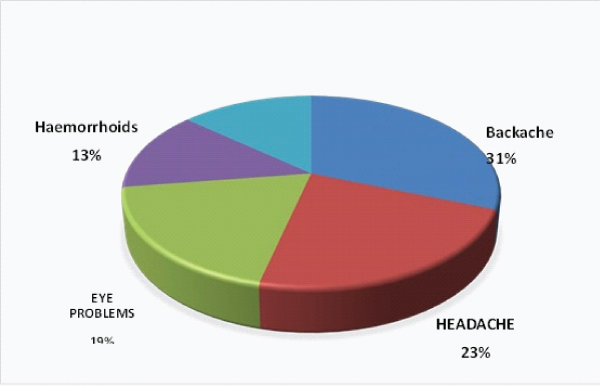 The majority of the participants had backaches, a small percentage of them had headaches, and only a few had eye issues, indigestion, or haemorrhoids. (Fig.5)